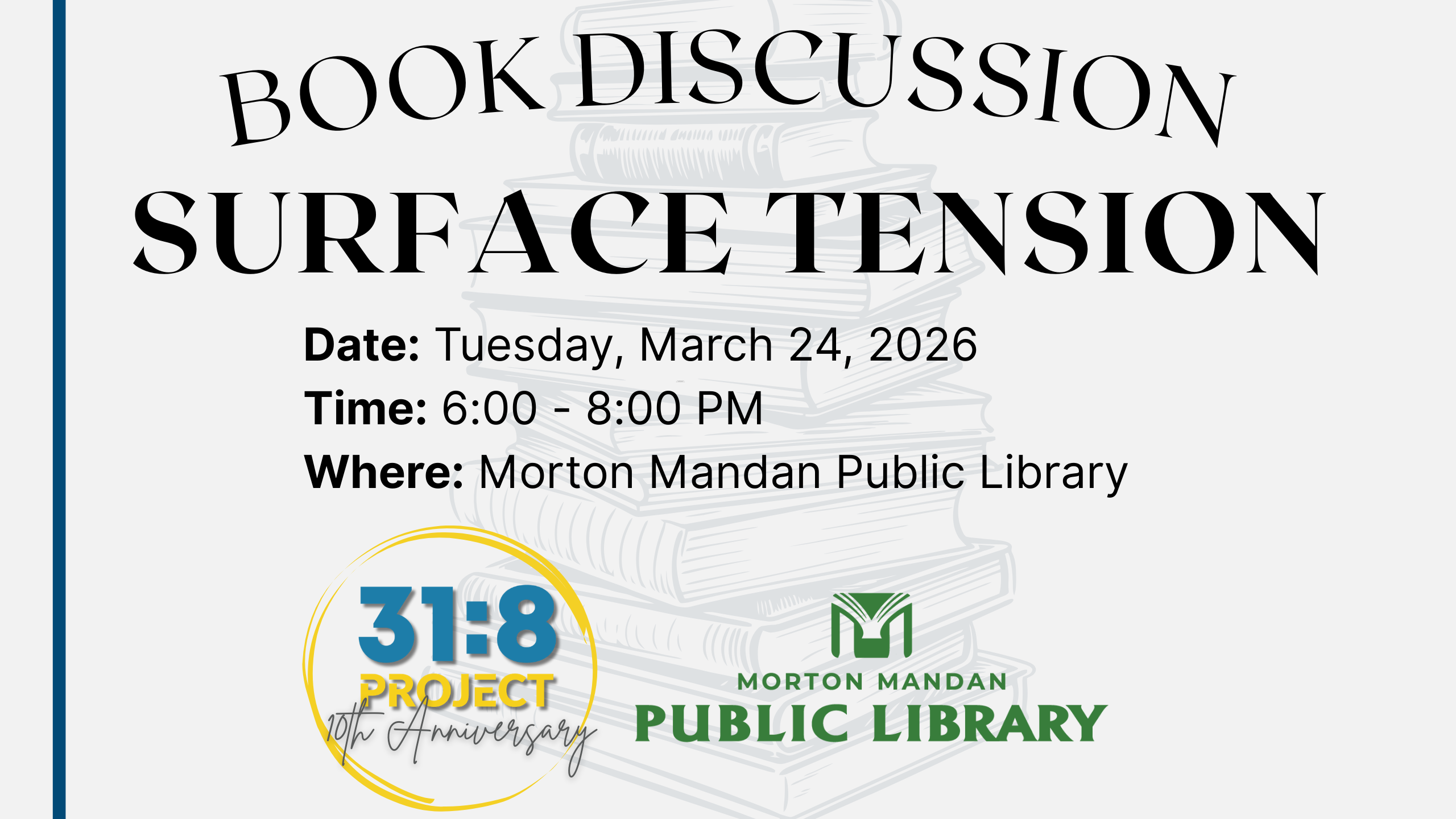 Event details Date: Tuesday, March 24, 2026 Time: 6:00-8:00 PM Location: Morton Mandan Public Library