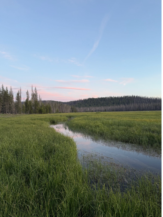 "After an exciting weekend at Lassen National Park, we began our second full work week. Sunrise hikes and lakeside naps faded into trailwork and crosscut sawing. Green Crew camped at Silver Lake from Monday to Wednesday, which also served as our worksite. We cleared the roughly three-mile trail bordering the lake. Mcleods, axes, saws, and loppers were used to push back the insistent brush. We stopped for lunch atop a rocky overhang, the lake shining sapphire with silver speckles below our almond butter and jelly wraps. We finished the lake trail in a day and a half and moved on to another trail in the Caribou Wilderness. Next thing we know, we are back at work, our tools shining in the light. Upon getting back to camp, we jumped into Silver Lake to wash off the workday. A kind neighbor let us use their kayaks and paddle boards, making a fun day even better. On Thursday morning, we packed up camp and set out for Lassen once more. The past two days, we've joined with the Wilderness Fuels Module and have learned to use crosscut saws to set the stage for a prescribed burn. Those of us interested in wildland firefighting have gotten into some great conversations about it. We are currently camped near Manzanita Lake and are excited for a really fun weekend. Happy 4th of July!"