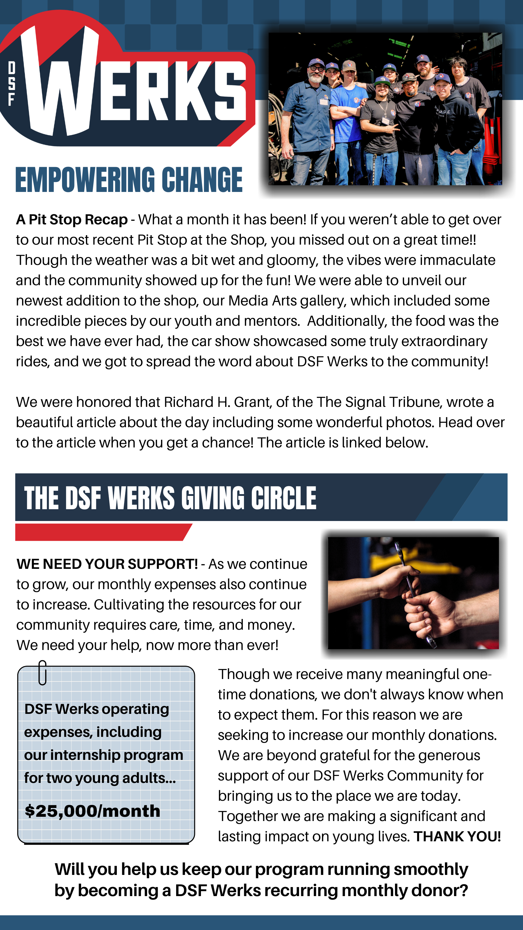We are a 501(C)(3) Non-Profit