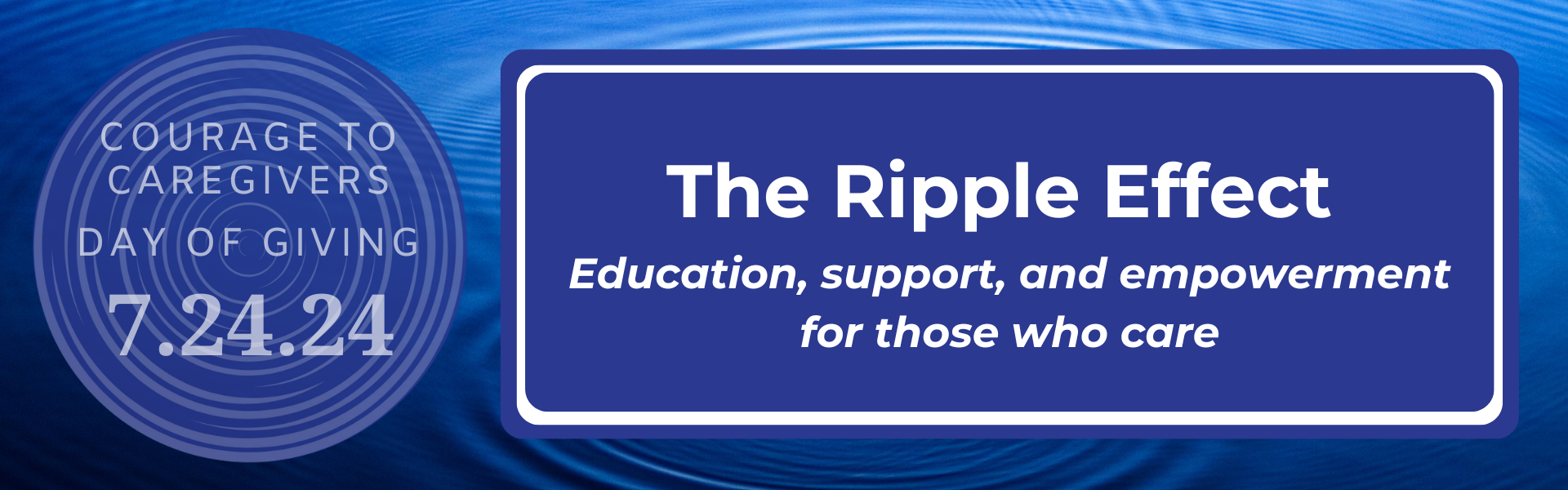 Wednesday, July 24, 2024 was International Self-Care Day, and our 5th annual Day of Giving! International Self-Care Day stresses the importance of self-care as the cornerstone of wellness. Please consider supporting our mission with your donation as we continue to guide caregivers through their journey of self-care and wellness, equipping them to better care for their loved ones. ALL donations are matched dollar for dollar through August 24! We chose our theme of the "Ripple Effect" because we believe in our vision - a world where health carers lead to healthier families and communities.